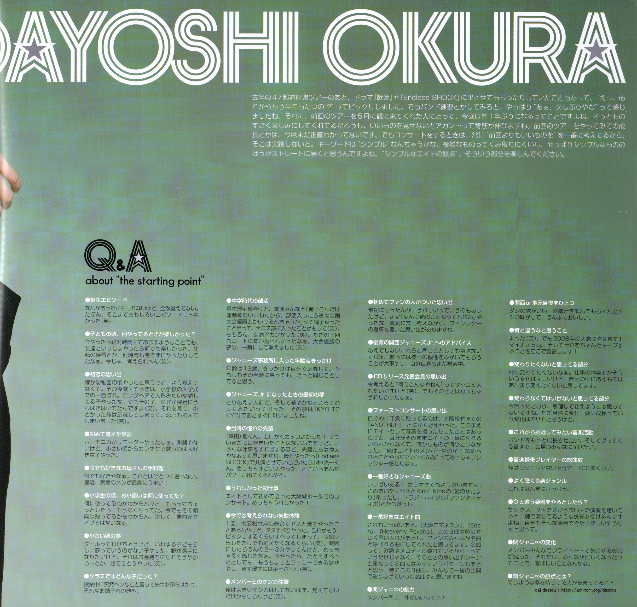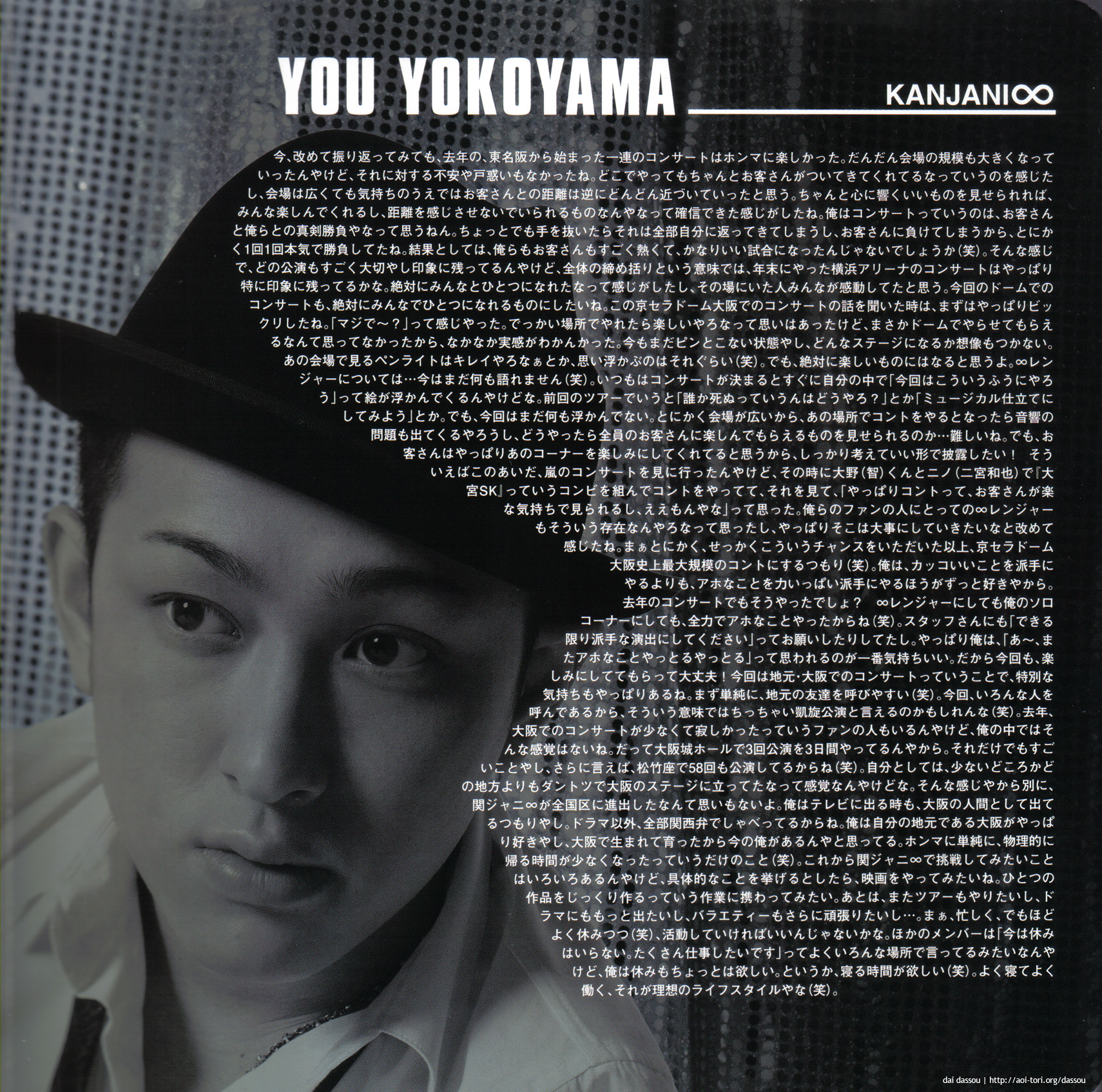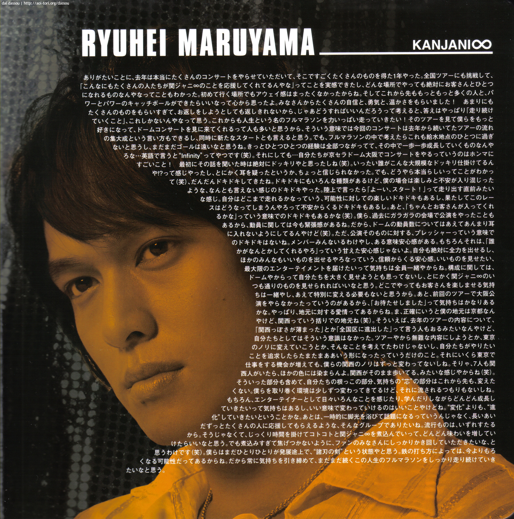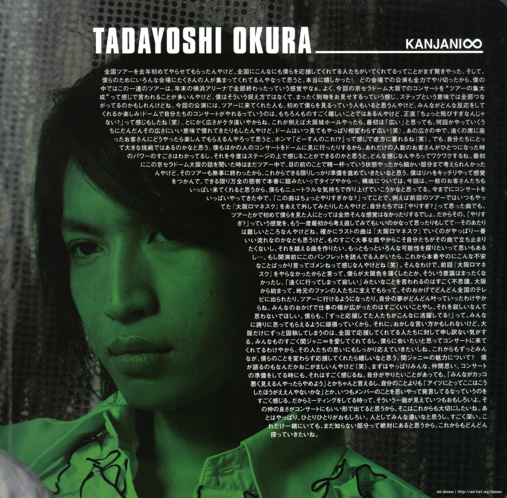 i started this gallery because i was inspired by the late jrock scan collective, blue neurose. impressed by the high quality scans and well organized collective i decided to start my own. thinking of a name, i couldn't really think of one but then kanjani8's great escape~大脱走~ started to play and i just decided to name it after that song. as you can see in my scan gallery, if i had not imported my glay scans here, it probably would have been a mini kanjani8 scan collective. LOL. i love them so much so you'll notice that bias here in this gallery.