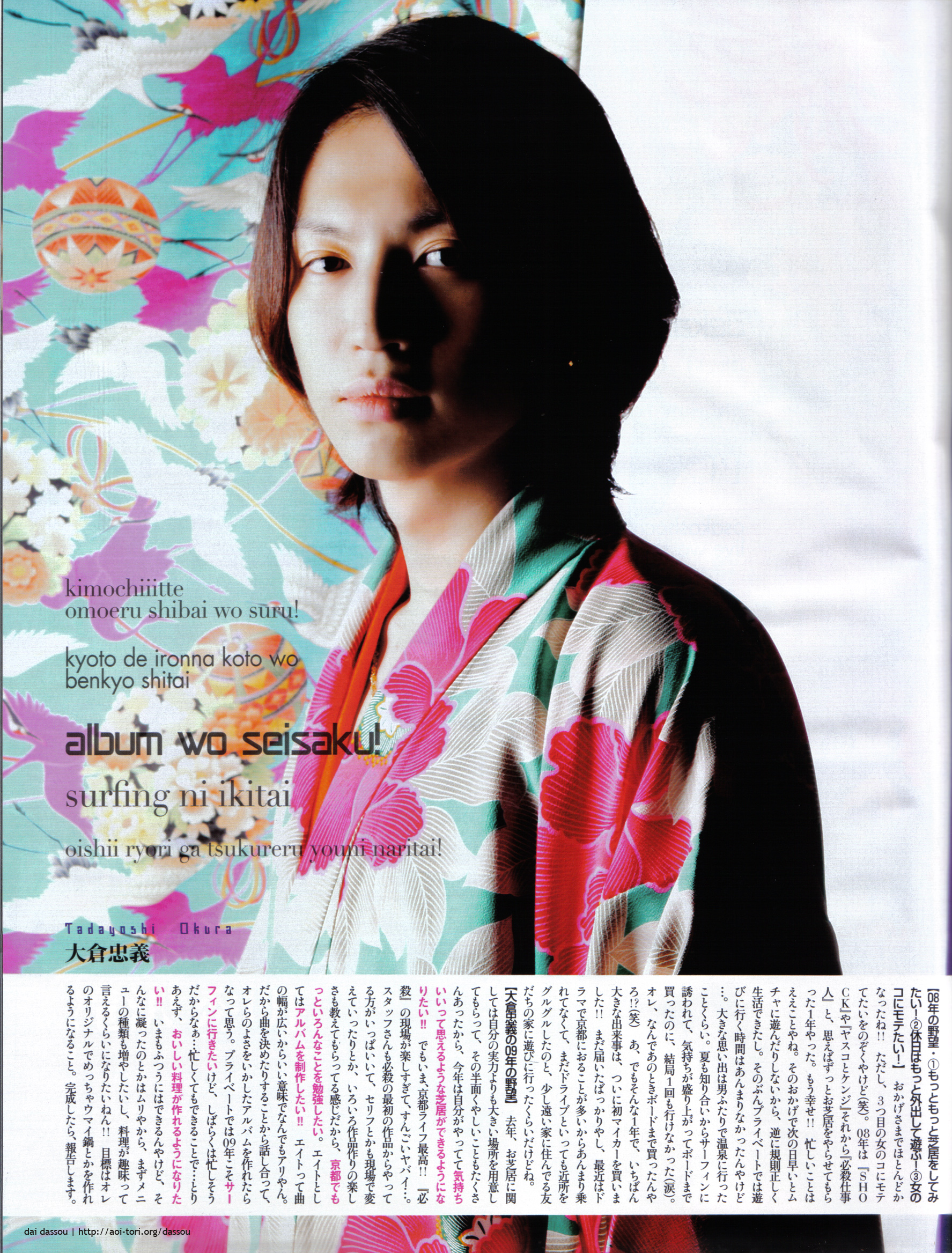 i started this gallery because i was inspired by the late jrock scan collective, blue neurose. impressed by the high quality scans and well organized collective i decided to start my own. thinking of a name, i couldn't really think of one but then kanjani8's great escape~大脱走~ started to play and i just decided to name it after that song. as you can see in my scan gallery, if i had not imported my glay scans here, it probably would have been a mini kanjani8 scan collective. LOL. i love them so much so you'll notice that bias here in this gallery.
